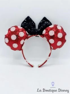 Serre TĂȘte Oreilles Minnie Mouse Sequins Disney Pois Rouge Strass Taille Enfant