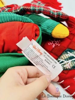 Botte de Noël verte et rouge avec différents motifs brodés comme des flocons de neige ou des sapins. En haut de la botte se trouve Winnie l’ourson vêtu d’un pullun , d’un bonnet vert et d’une grande écharpe. Grand espace de rangement à l’intérieur de la botte. Petit fil derrière la tête de Winnie pour pouvoir la suspendre où vous le souhaitez, au dessus de la cheminée par exemple ! Très grande chaussette de plus de 70 cm de long !
