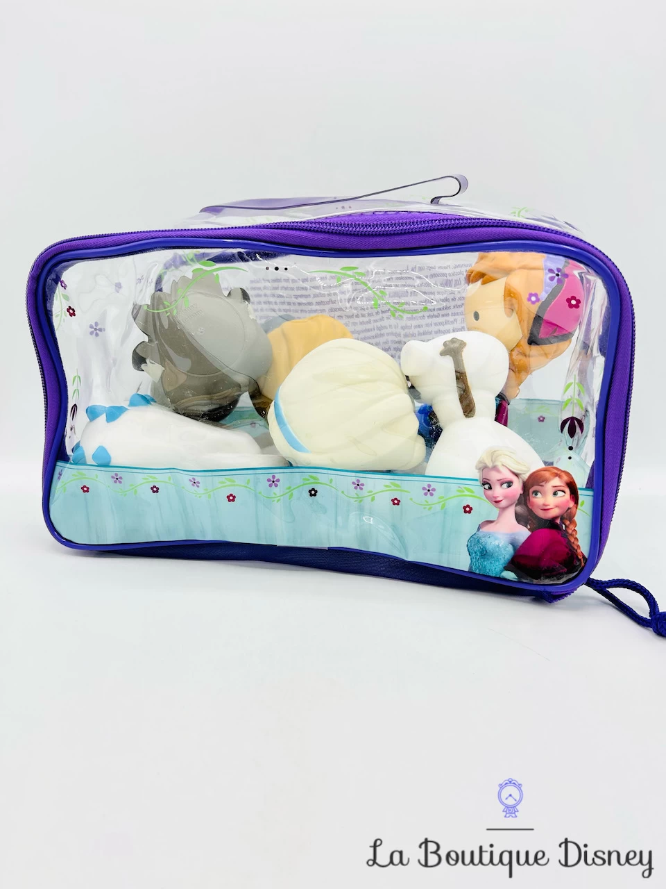 Ensemble de 6 figurines de bain issues du dessin animĂ© La Reine de Neiges. Vous retrouvez notamment Elsa, Anna, Kristoff, Sven, Olaf et Guimauve. Les figurines sont pourvues d’un petit trou en dessous pour Ă©vacuer l’eau et sont en plastique souple. Elles sont vendues dans leur pochette de rangement en plastique.