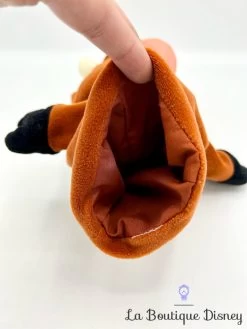 Peluche du phacochère marron et meilleur ami de Timon, Pumbaa. Il a des yeux en plastique noirs, une grande touffe entre ses deux oreilles et deux grandes cornes. En dessous de la peluche, il y a un emplacement pour glisser sa main, elle peut alors devenir une marionnette. Peluche / marionnette très originale pour complĂ©ter une collection !Â