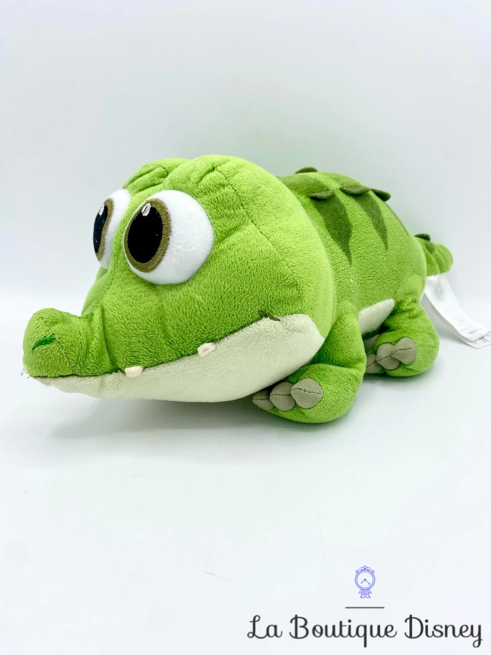 Peluche représentant le crocodile vert alors qu’il n’est qu’un bébé dans le dessin animé Clochette et la fée pirate. Quand il deviendra grand, il sera le crocodile du dessin animé Peter Pan et célèbre terreur du Capitaine Crochet ! Yeux brodés. Dents blanches en feutrine. Écusson « Disney Store Original Authentic » sous le ventre de la peluche.