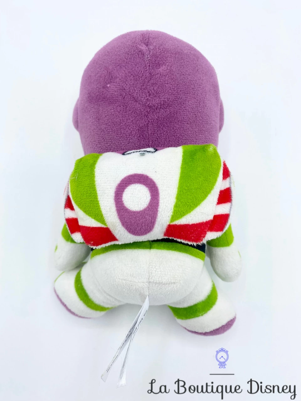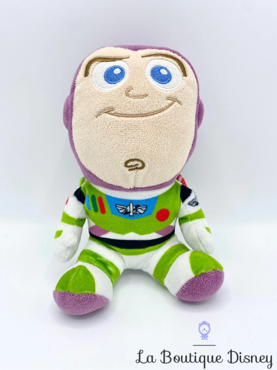 Peluche en polyester de Buzz l’Ă©clair, le space-ranger de l’espace le plus connu de l’univers des jouets ! Il se tient assis dans sa combinaison blanche, verte et violette. Son visage est brodĂ© et il affiche un large sourire.