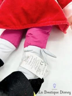 Peluche en polyester du Capitaine Crochet, le grand méchant du dessin animé Peter Pan. Il dirige son équipage de pirates dans son bateau le Jolly Roger avec une ambition : attraper Peter ! Il porte une tenue en velours rouge avec une petite colerette blanche. Il a un grand chapeau avec une plume mauve. À la place d’une de ses mains, il a un crochet argenté. Peluche style poupée chiffon de très belle qualité. Écusson officiel Disney Store Original & Authentic sous le pied.