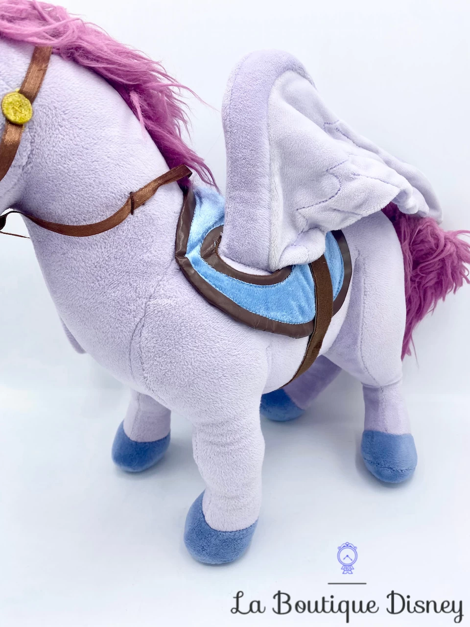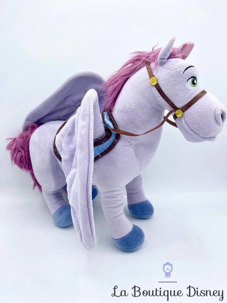Peluche en polyester du cheval violet de Sofia, Minimus. Ce pĂ©gase vit dans les Ă©curies de la Royal Preparatory Academy. Il a la peau violette, deux petites narines, des yeux verts brodĂ©s et des oreilles roses. Minimus a une longue crinière et une longue queue en poils violets. Il a deux grandes ailes et sur son dos se trouve une selle bleue claire. Il est prĂŞt Ă s’envoler avec vous pour partir dans le monde d’Enchancia !