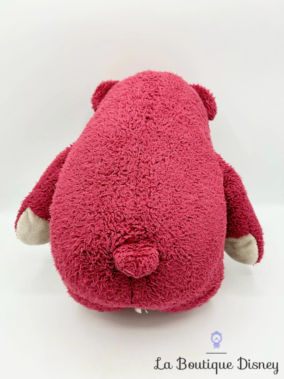 Peluche de l’ourson rose du dessin animĂ© Toy Story 3, Lotso, le dirigant cruel, mĂ©chant et manipulateur de la garderie Sunnyside n’hĂ©sitant pas Ă faire endurer les pires souffrances aux jouets qui refusent de se soumettre Ă sa volontĂ©. Il est rose et gris avec des poils très doux. Il a un Ă©norme museau et il arbore un sourire machiavĂ©lique.