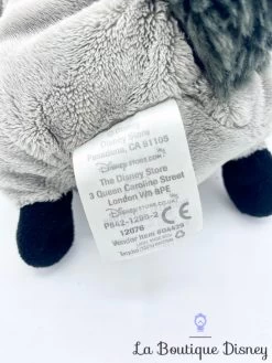 Peluche de Meeko, le célèbre raton laveur gris ami de Pocahontas. Il se tient assis et arbore ses quatres petites pattes noires et une longue queue rayée noire et grise. Visage brodé. Sa fourrure et son ventre tout doux donneront vraiment envie de le caliner !
