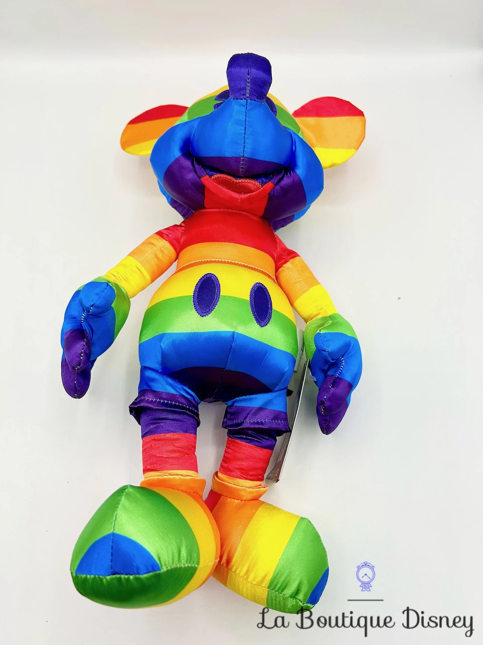 Peluche de Mickey Mouse entièrement recouvert par toutes les couleurs de l’arc-en-ciel. On retrouve les couleurs orange, jaune, vert, bleu et violet. Son visage est brodĂ© et son corps entièrement satinĂ© ! Peluche rigide.