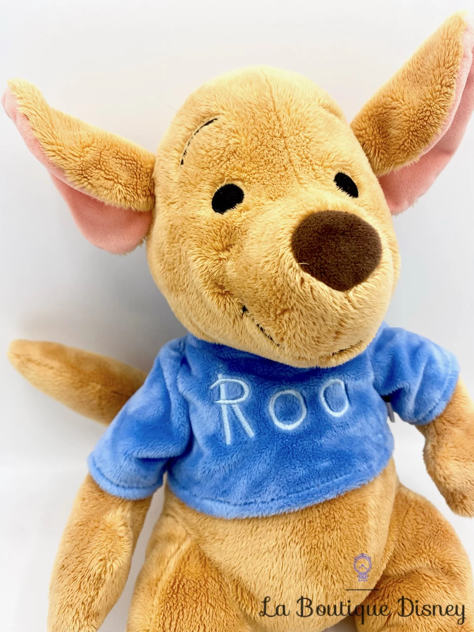 Peluche de Petit Gourou, fils de Grand Gourou et meilleur ami de Tigrou dans le dessin animĂ© Winnie l’ourson. C’est un petit kangourou marron. Il a de grandes oreilles roses, des petits yeux marron brodĂ©s et porte un tee shirt bleu sur lequel est inscrit « Roo ». La peluche est très douce.Â