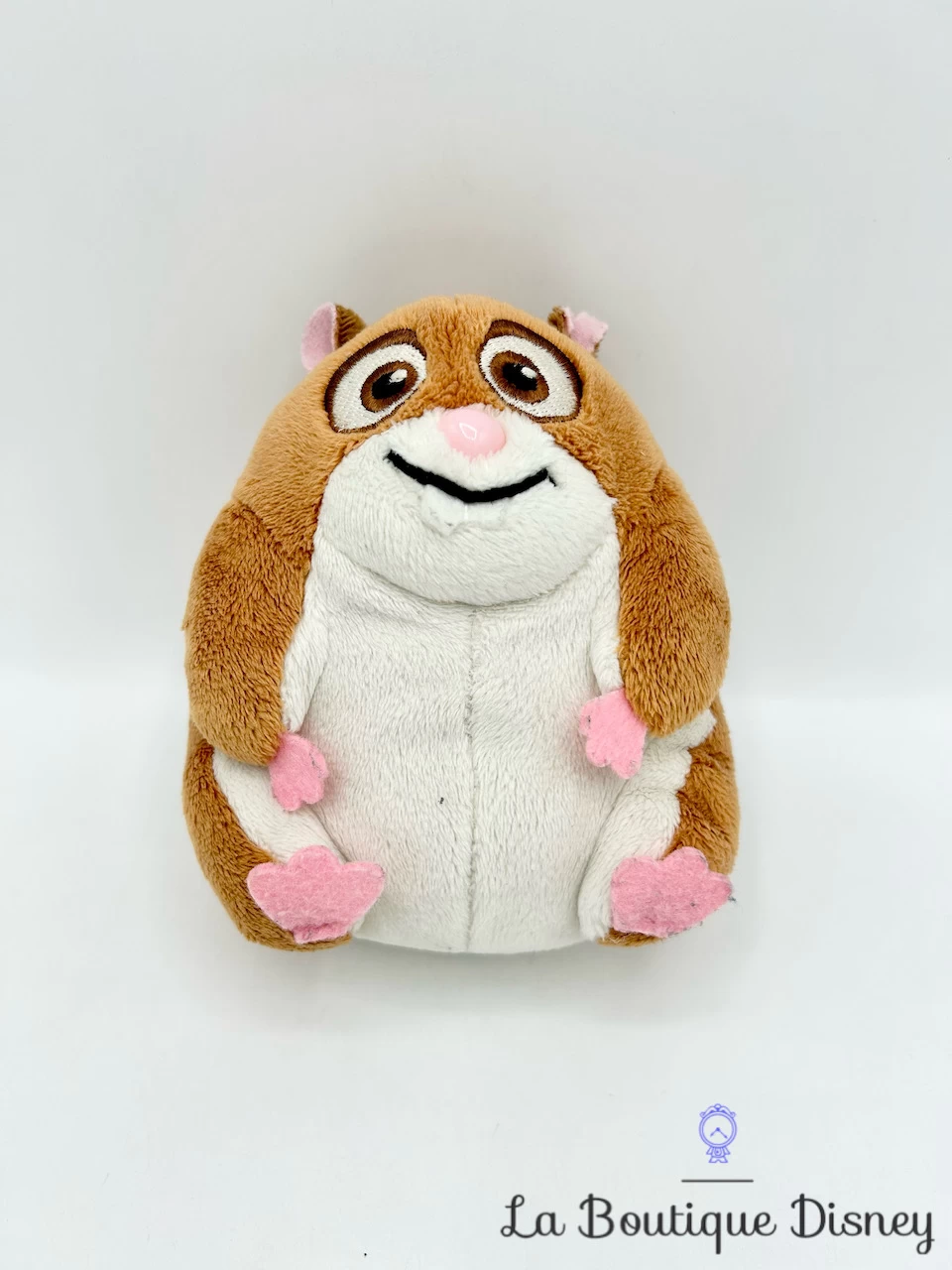 Peluche représentant Rhino, le petit hamster marron grand fan de Volt. Il a un visage brodé, des petites oreilles et des pattes roses.