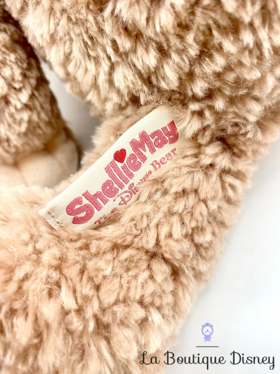 Peluche de ShellieMay, le petit ours marron clair amie de Duffy. Elle a deux yeux bleus en plastique dur et affiche un petit sourire. Sur le dessous de ses pattes se trouvent des coussinets en forme de tête de Mickey. Peluche très douce.