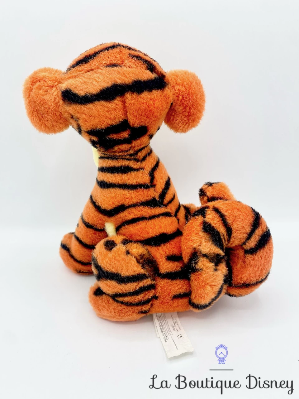 Peluche de Tigrou l’adorable tigre orange Ă rayures noires ami de Winnie l’ourson qui adore bondir avec sa grande queue en forme de tire bouchon dans la forĂŞt des rĂŞves bleus. Son corps est orange, son ventre jaune et il a des petits yeux en plastique marron. Peluche Ă©paisse de très belle qualitĂ©. Il est assis prĂŞt Ă vous faire de gros câlins !