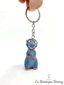 Porte clés de Rémy, le petit rat bleu cuisinier de Paris ! Il a un museau, des pattes et des petites oreilles roses. Anneau classique à porte clef argenté.