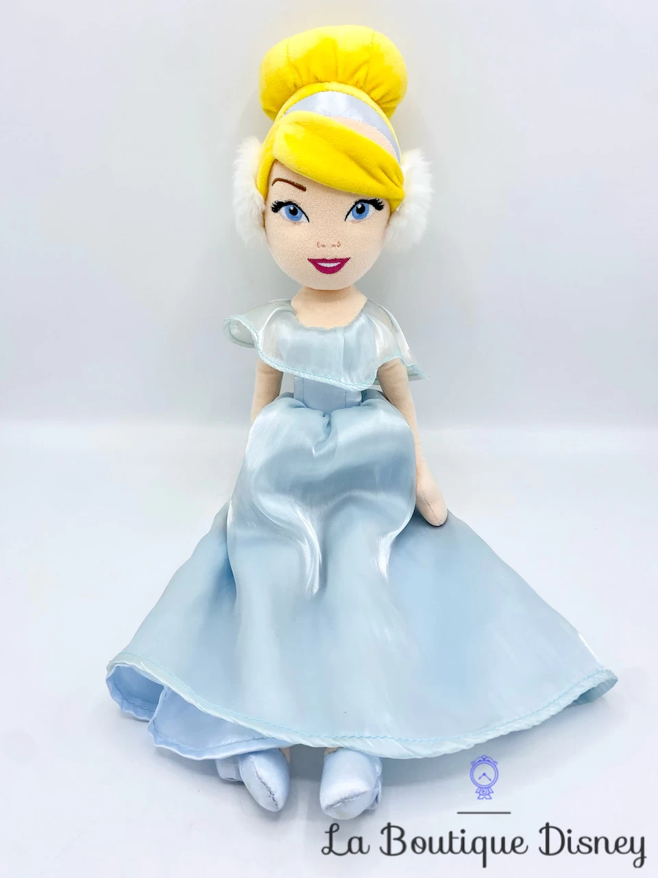 Peluche de la princesse Cendrillon avec un sublime visage brodĂ©, des yeux bleus et des cheveux blonds remontĂ©s en chignon. Elle porte une très jolie robe bleu clair en satin avec un voile donnant un effet brillant Ă la tenue. La princesse porte dans cette version un cache oreilles en fourrure blanche. Elle est tout Ă fait prĂŞte pour affronter le froid de l’hiver !