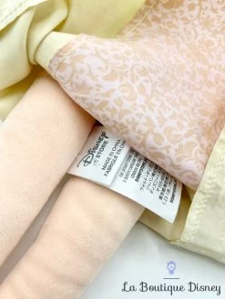 Peluche de la princesse Raiponce vêtue de sa tenue de mariage ! Elle porte une robe beige en satin avec des motifs dorés. Sa longue chevelure blonde est nouée en une tresse dans laquelle se trouvent des fleurs. Yeux verts et visage brodé. Très belle poupée chiffon pour compléter la collection !