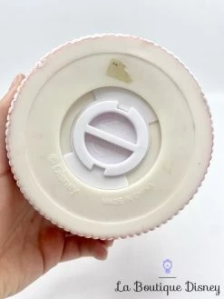 Tirelire en plastique dur reprĂ©sentant la cĂ©lèbre souris Minnie Mouse. Minnie est debout sur un socle rouge recouvert de petits coeurs roses avec l’inscription « Minnie Mouse » en blanc. Elle porte sa robe habituelle rouge Ă pois blancs et son noeud sur la tĂŞte. Une fente est situĂ©e sur l’arrière de la tirelire et on note un bouchon rĂ©cupĂ©rateur en dessous.Â